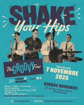 | Vend. 07. Nov. | PARIS (75) Cirque Romanes 34 bd de l'Amiral Bruix | Annulé THE GROOVY FOUR FLYER | rock_n_roll blues swing |