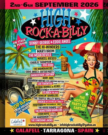 | 02. au 06. Sept. | CALAFELL (Espagne) | High Rockabilly 24 SONNY GEORGE & EDDIE ANGEL , MARTI BROWN , THE HI WINDERS , THE MEAN DEVILS , MARCEL RIESCO , CHARLIE THOMPSON , ICHI BONS , THE BARNSHAKERS , EDDIE ANGEL'S GUITAR PARTY , SMOKESTACK LIGHTNIN , RUBY ANN , BRANDON WAYNE & HIE LONESOME DRIFTERS , LOS TORONTOS , GEORGE RUMBLE & KEIKO , EIVIND & THE BASEMENT BOYS , CLARK & THE ACES , HOWLIN' RAMBLERS , THE TRUFFLE VALLEY BOYS , ROCKIE & EL HI BALLIN' THREE O , MARYANN & THE RAMBLIN' THREE , THE GOOSE BUMPS , THE HOMETOWN GAMBLERS , COSH BOYS , DIE MARKSMEN , THE LONESOME JACKS Flyer | rock_n_roll rockabilly country |