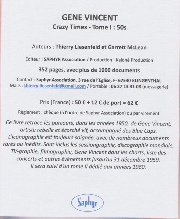 | Publicity | Novembre 2025 | ![]() GENE VINCENT : Ce livre retrace son parcours dans les années 50 avec de très nombreux documents Infos pour commander , tarifs , frais de port | rockabilly blues country cajun |