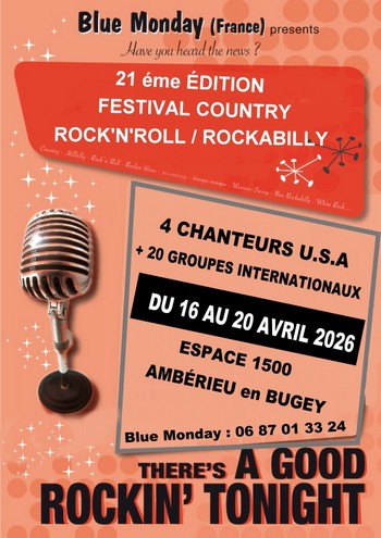 | 16. au 20. Avril | AMBERIEU EN BUGEY (01) Espace 1500 Tel 06.87.01.33.24  |  Blue Monday présente Good Rockin Tonight 21 PRE FLYER  | rock_n_roll rockabilly  |