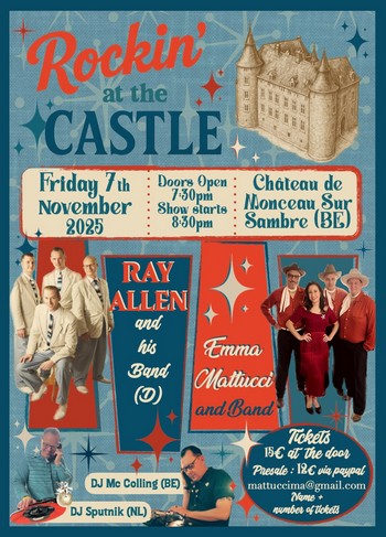 Vend. 07. Nov. | CHÂTEAU DE MONCEAU SUR SAMBRE (Belgique) Infos | Rockin' at the Castle : RAY ALLEN & BAND , EMMA MATTUCCI & BAND FLYER | |