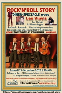 | Sam. 13. Dec. | AUXY (45) Relais de la gare 12hameau de la Gare Tel 06.75.23.30.69 | LES VINYLS Guest VIGON & MOUSTIQUE FLYER | rock_n_roll rockabilly |