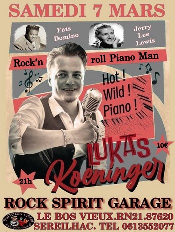 | Sam. 07. Mars | SEREILHAC (87) Au Rock Spirit Garage le Bos Vieux Tel 06.13.55.20.77 | LUKAS KOENINGER FLYER | rockabilly rock_n_roll boogie_woogie |